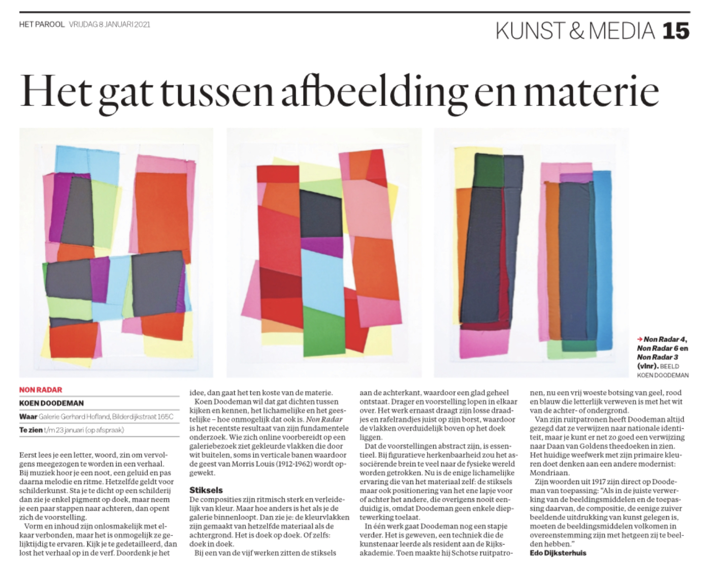 Review NON RADAR in PAROOL (Ned) Exhibition text NON RADAR (Ned/Eng)